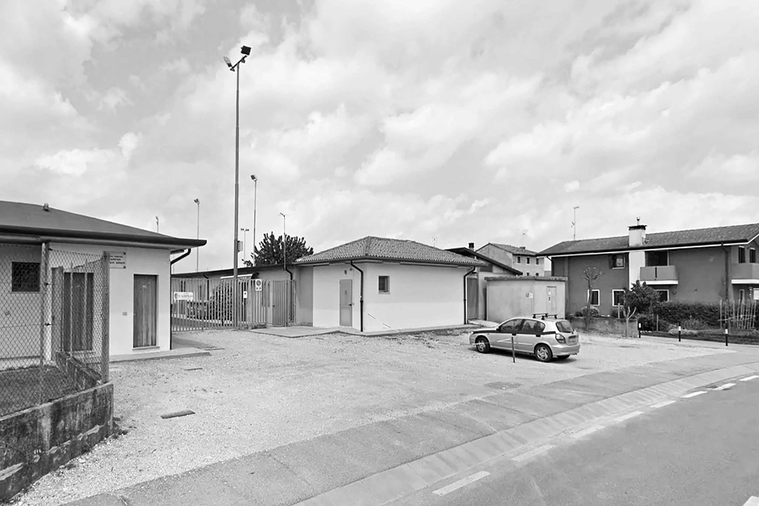 Il progetto di ampliamento si inserisce nel contesto dei campi sportivi di Campigo, frazione del Comune di Castelfranco Veneto, dove la sede dell’A.S.D. Campigo necessitava di un potenziamento funzionale dell’area ristorazione esistente. L’intervento, dal budget molto contenuto, nasce dall’esigenza di fornire alla struttura un ambiente attrezzato per la preparazione di pasti e la gestione di eventi conviviali, in continuità con gli spogliatoi e i campi da gioco già presenti. L’obiettivo progettuale è garantire un miglioramento dell’offerta ricreativa, integrando un nuovo volume costruito con discrezione e rispetto per il contesto esistente. Il nuovo spazio, concepito come cucina a servizio delle attività associative e delle festività locali, si collega direttamente all’area servizi preesistente tramite una struttura in cemento armato. Dal punto di vista tecnico, l’edificio è dotato di una controparete interna in calcestruzzo, destinata sia all’isolamento termico sia all’alloggiamento degli impianti elettrici. Particolare attenzione è stata riservata all’illuminazione e alla ventilazione naturali: finestre a nastro, posizionate nella parte alta delle pareti, consentono l’ingresso della luce solare e favoriscono il ricambio d’aria, lasciando libera la superficie muraria inferiore per il posizionamento completo delle attrezzature da cucina. Esternamente, l’edificio sarà caratterizzato da un rivestimento sobrio e integrato nel paesaggio, arricchito dalla presenza del logo dell’A.S.D. Campigo e da elementi di verde per mitigare l’impatto visivo e favorire l’armonia con il contesto ambientale. Un volume essenziale che completa il complesso sportivo, rispettandone l’identità e contribuendo con discrezione alla vitalità del luogo.