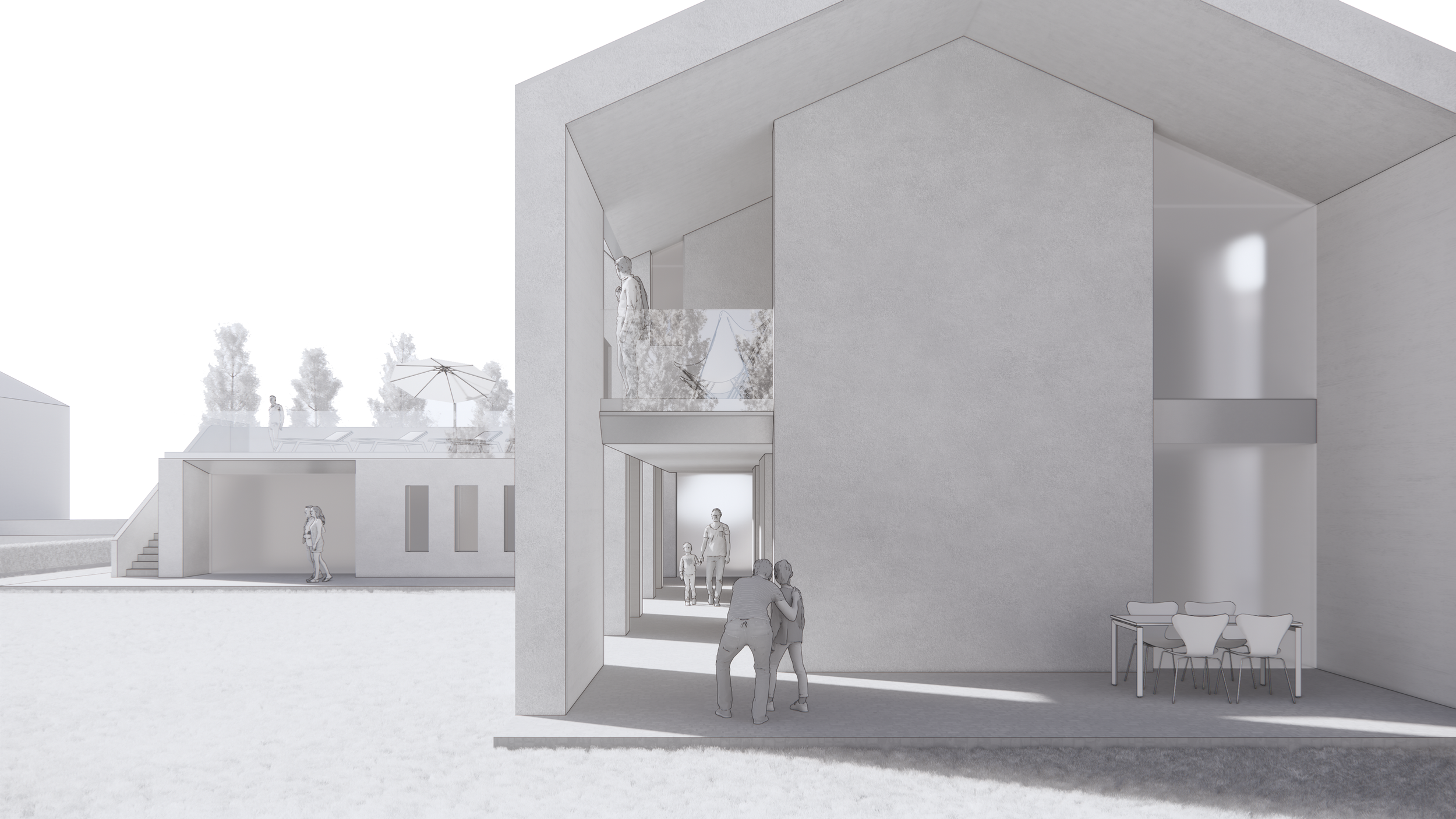 Nel cuore del paesaggio alpino, ma a pochi chilometri dal centro della città di Belluno, Casa Barozzi si configura come una residenza unifamiliare di nuova costruzione, concepita per instaurare un dialogo attivo e armonico con il contesto naturale. Il progetto nasce dalla volontà di unire funzionalità e identità architettonica, attraverso un linguaggio essenziale che mette in relazione materiali, luce e paesaggio. L’edificio si sviluppa su due livelli e si compone di due corpi di fabbrica distinti ma omogenei per forma e matericità: cemento a vista, pietra e grandi superfici vetrate si alternano e si sovrappongono, definendo una composizione architettonica chiara e contemporanea. Un vialetto di ingresso collega la strada all’abitazione, introducendo a un primo blocco compatto che accoglie, al piano terra, la zona giorno: uno spazio ampio e luminoso affacciato sul giardino, da cui si sviluppa la scala principale verso il piano superiore. Sempre a questo livello, il corpo sud ospita gli ambienti di servizio – lavanderia, guardaroba e bagno – e una taverna pensata come ambiente conviviale e di relax, anch’essa in continuità visiva con l’esterno. Il primo piano si sviluppa esclusivamente sul volume nord, ma grazie a una distribuzione accurata e all’utilizzo di aperture ben calibrate, gli ambienti risultano ariosi e ben proporzionati. Qui trovano spazio una zona dedicata ad attività ricreative, come la palestra e la sala musica, e la zona notte, composta da una camera padronale con bagno privato e guardaroba, affiancata da due ulteriori camere servite da un bagno comune. Ogni stanza è dotata di una terrazza privata affacciata sul giardino, rafforzando il legame diretto con il paesaggio circostante. A completare il progetto, un’ampia terrazza posizionata sopra il secondo corpo di fabbrica diventa elemento centrale dell’abitazione: accessibile sia dalla zona ricreativa interna che tramite una scala esterna che conduce direttamente al giardino, questo spazio è pensato come luogo multifunzionale, adatto a ospitare momenti di relax, convivialità o piccoli eventi privati. Casa Barozzi racconta un’idea di abitare dove la sobrietà dei volumi incontra la forza del paesaggio, in un equilibrio costante tra intimità, apertura e relazione con l’ambiente.