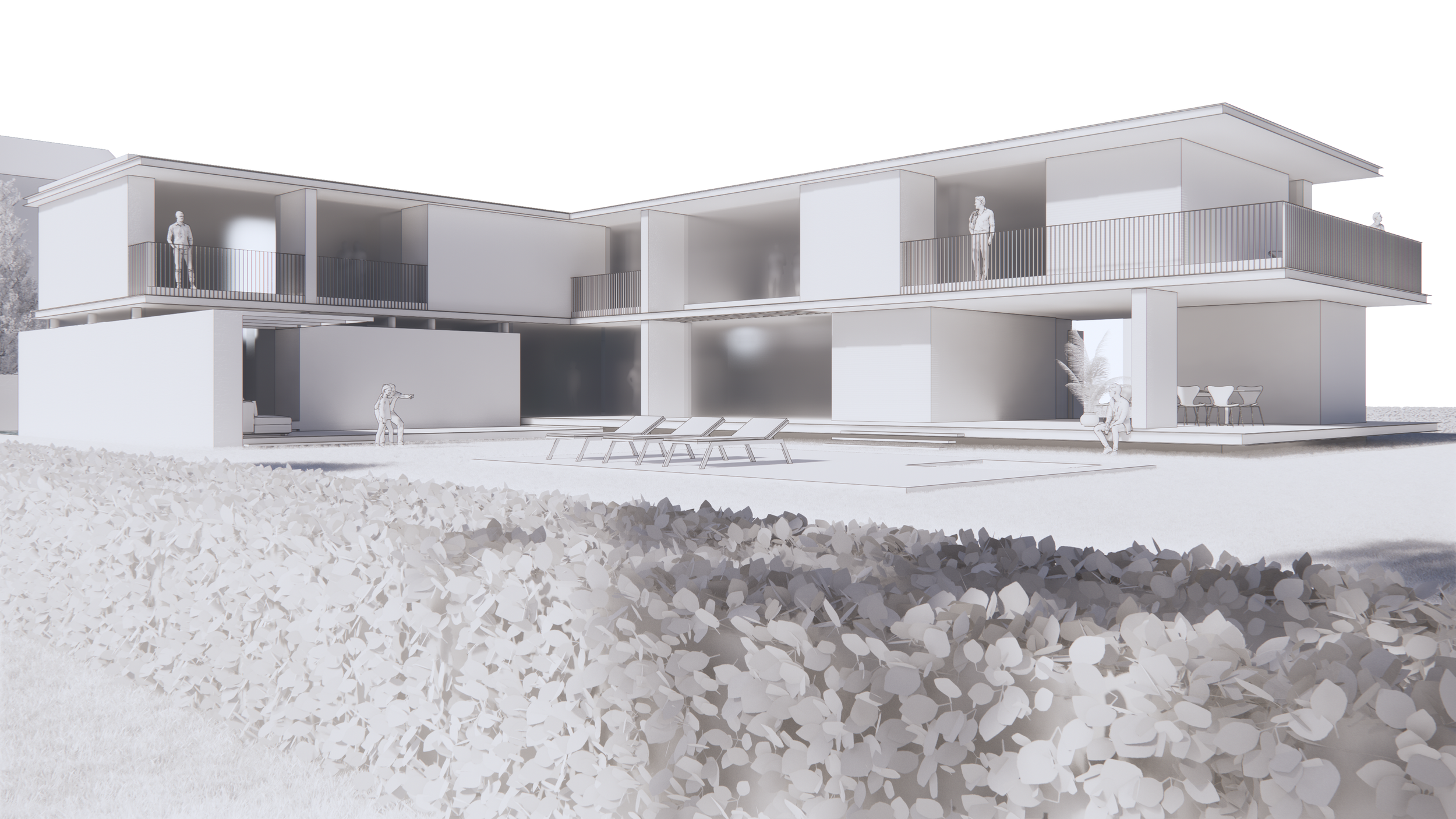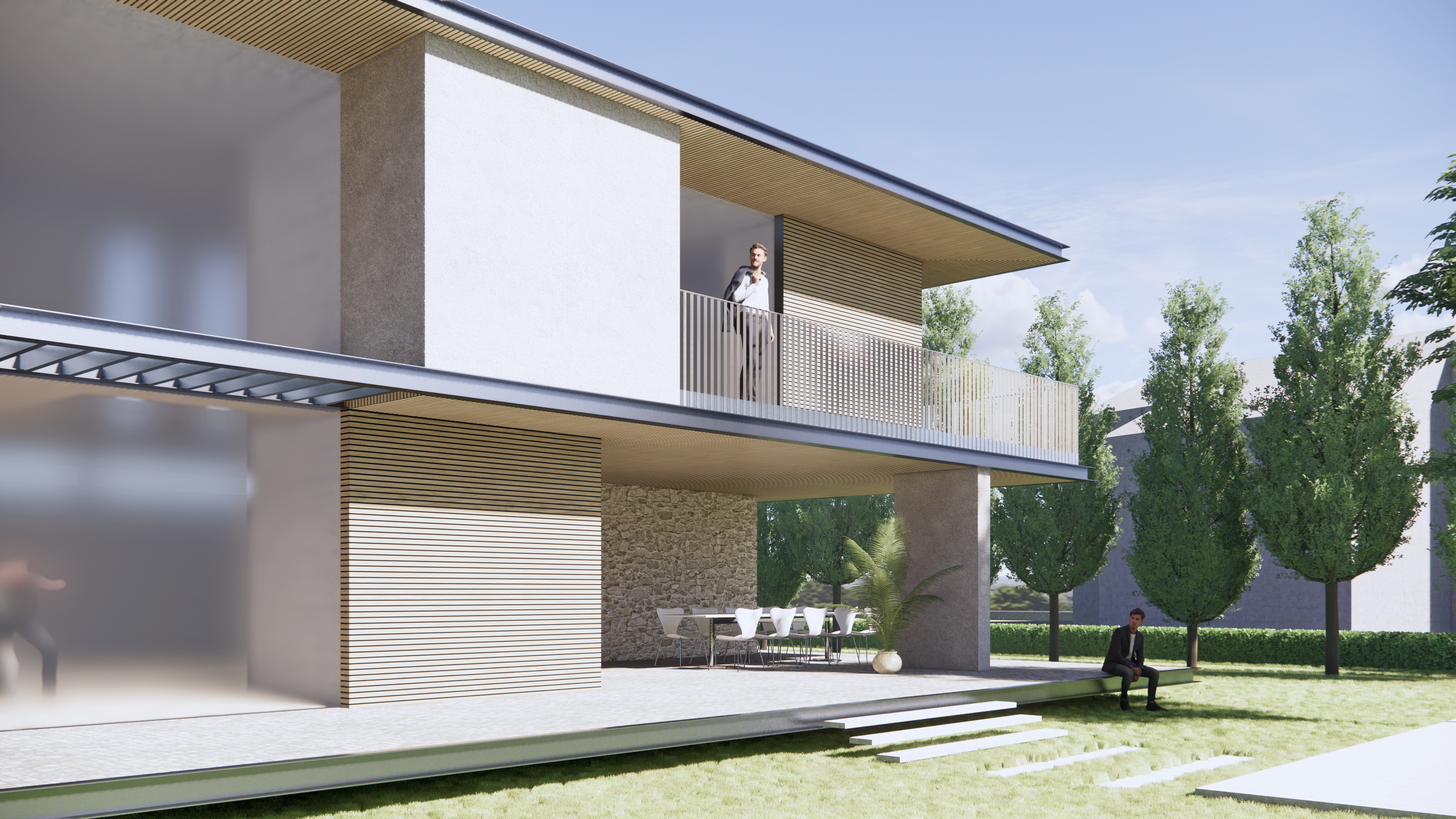 Immersa nel paesaggio alpino, ma in prossimità del centro della città di Belluno, Casa Burattini nasce come abitazione unifamiliare di nuova costruzione con l’obiettivo di reinterpretare il territorio in chiave contemporanea, instaurando un dialogo armonico tra architettura e natura. Il volume, organizzato su tre livelli e sviluppato a L per adattarsi alla morfologia del lotto, si compone di un piano interrato, un piano terra e un primo piano. L’edificio si distingue per le linee geometriche nette che ne scandiscono l’articolazione, mentre terrazze e copertura ospitano vegetazione e verde pensile, contribuendo a un’integrazione discreta ma decisa con il contesto naturale. L’accesso all’abitazione avviene tramite un vialetto che collega direttamente la strada alla casa. All’interno, ampie vetrate a tutta altezza nella zona giorno si affacciano sul giardino, garantendo luminosità naturale e continuità visiva tra interno ed esterno. Al piano terra, la porzione sud ospita gli spazi di servizio – lavanderia, bagno e una palestra – mentre a nord si sviluppa l’area living con soggiorno, cucina e sala da pranzo, collegata verticalmente agli altri livelli grazie a due blocchi scala posizionati all’ingresso e accanto al soggiorno. Il piano interrato accoglie la cantina, mentre la zona notte occupa interamente il primo piano: a nord si trovano la camera padronale con bagno privato e doppio guardaroba, due ulteriori camere con bagno e guardaroba, e uno spazio relax pensato come area lettura; a sud sono collocati una camera e un’area benessere per gli ospiti, con bagno e sauna. Le camere affacciate sul giardino sono dotate di ampie vetrate per valorizzare il paesaggio, mentre quelle rivolte verso la strada alternano superfici opache a sottili schermi vitrei per assicurare maggiore privacy. Completano il progetto un solarium all’interno del giardino, una spaziosa autorimessa con posti auto aggiuntivi, un deposito per attrezzi e un porticato sul fronte rivolto al giardino, elemento chiave che definisce l’interazione tra casa e paesaggio. Casa Burattini non è solo un’abitazione, ma un equilibrio misurato tra memoria e visione, dove l’architettura si fa paesaggio e il paesaggio entra silenziosamente nella vita quotidiana.