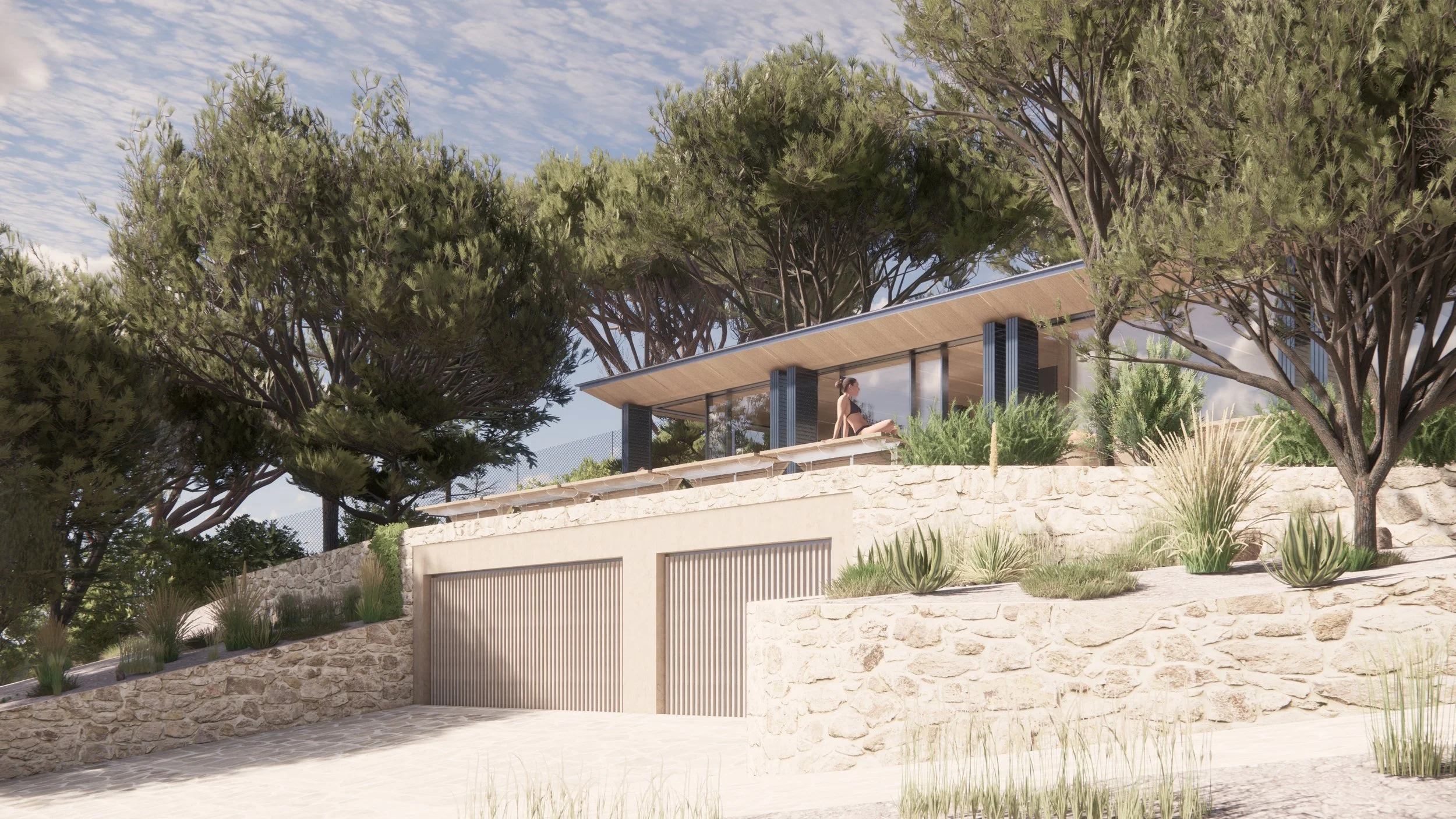 Il progetto si inserisce su una costa rocciosa della Croazia, dove un pendio scende dalla montagna fino a lambire l’acqua cristallina della spiaggia privata. L’orografia del luogo e le preesistenze hanno indirizzato le scelte progettuali, con l’obiettivo di integrare una nuova dependance all’interno della pineta che circonda un complesso già esistente. In continuità con la guest house precedentemente realizzata, anche questa nuova costruzione si presenta come un volume leggero, definito da pochi segni essenziali e ampie superfici vetrate. L’architettura si mimetizza tra gli alberi, aprendosi verso il mare per valorizzare la vista sul paesaggio, e mantenendo un dialogo costante con la natura circostante.